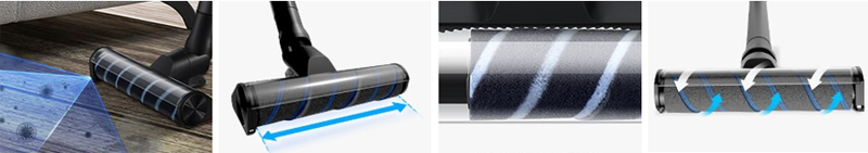 액티브 슬림 브러시 삼성 비스포크 AI 제트 VS90F40CRG, VS28D950ACB의 메인 브러시는 액티브 슬림 브러시, 비스포크 제트 VS20C954AQB는 슬림 LED 마루 브러시로 메인 브러시도 서로 다르다. 슬림 LED 마루 브러시 대비 액티브 슬림 브러시의 장점은 LED 라이트 각도, 브러시 유효폭, 톱니 모양 스크래퍼, 단차 구조 디자인이다.