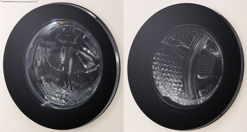 (좌) WA2525EGZF, (우) WA2525GEHF LG 워시타워 WA2525EGZF, WA2525GEHF는 본체 색상뿐만 아니라 도어 테두리 색상에서도 차이가 있다. WA2525EGZF의 도어 테두리 색상은 실버, WA2525GEHF의 도어 테두리 색상은 블랙으로, 실버는 블랙 대비 깔끔함과 포인트 컬러가 될 수 있다는 장점이 있고, 블랙은 실버 대비 도어의 전체적인 일체감을 준다는 장점이 있다.